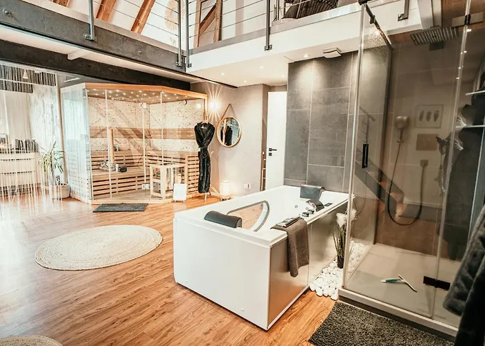 Ubytování je 95 km od letiště Hahn. Hosté budou hýčkáni s vířivkou a saunou.