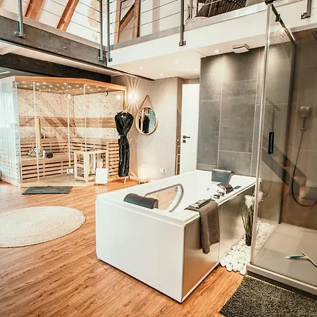 Die Gäste dieses Apartments können das Stadtzentrum von Ralingen innerhalb von 15 Minuten zu Fuß erreichen. Zu den Sehenswürdigkeiten in einer 6 Fußminuten Entfernung von diesem 70 m^2 großen Apartment gehört St. Nikolaus. Reichsabtei Echternach ist in 15 Autominuten Entfernung vom Luxusloft Timeout With Private Spa.